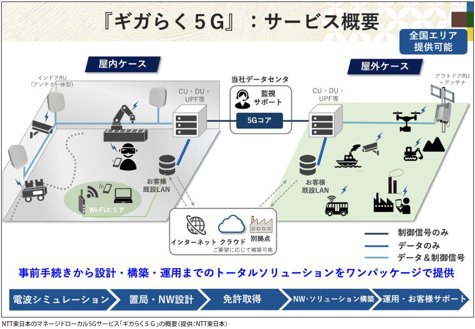 しかし、ローカル5Gを構築、運用するにはWi-Fiよりも高度な知識と豊富な経験が必要になり、初期費用もかさむ。そこでNTT東日本が提供しているのが、マネージドローカル5Gサービス「ギガらく5G」だ。
