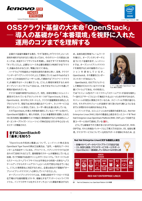 クラウド基盤を実現するOSSとして活発な動きを見せる「OpenStack」。その基礎から導入の初歩、本番環境を視野に入れたHA(高可用性)構成構築のコツを紹介するセミナーをレポート。(8P構成)