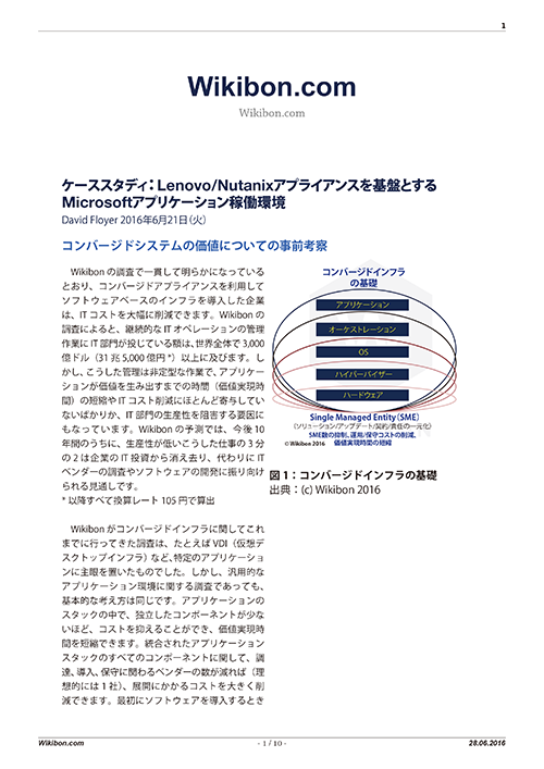 「コンバージドアプリケーションアプライアンス」に関する調査結果をまとめたホワイトペーパー。検証の結果、Acropolisを利用したLenovo/Nutanixアプライアンスに大きな導入メリットが見込まれ、企業のIT幹部はソフトウエアベンダーとハードウエアベンダーがシームレスかつ密接に統合したコンバージドソリューションに注目すべきだといいます。(10P構成)