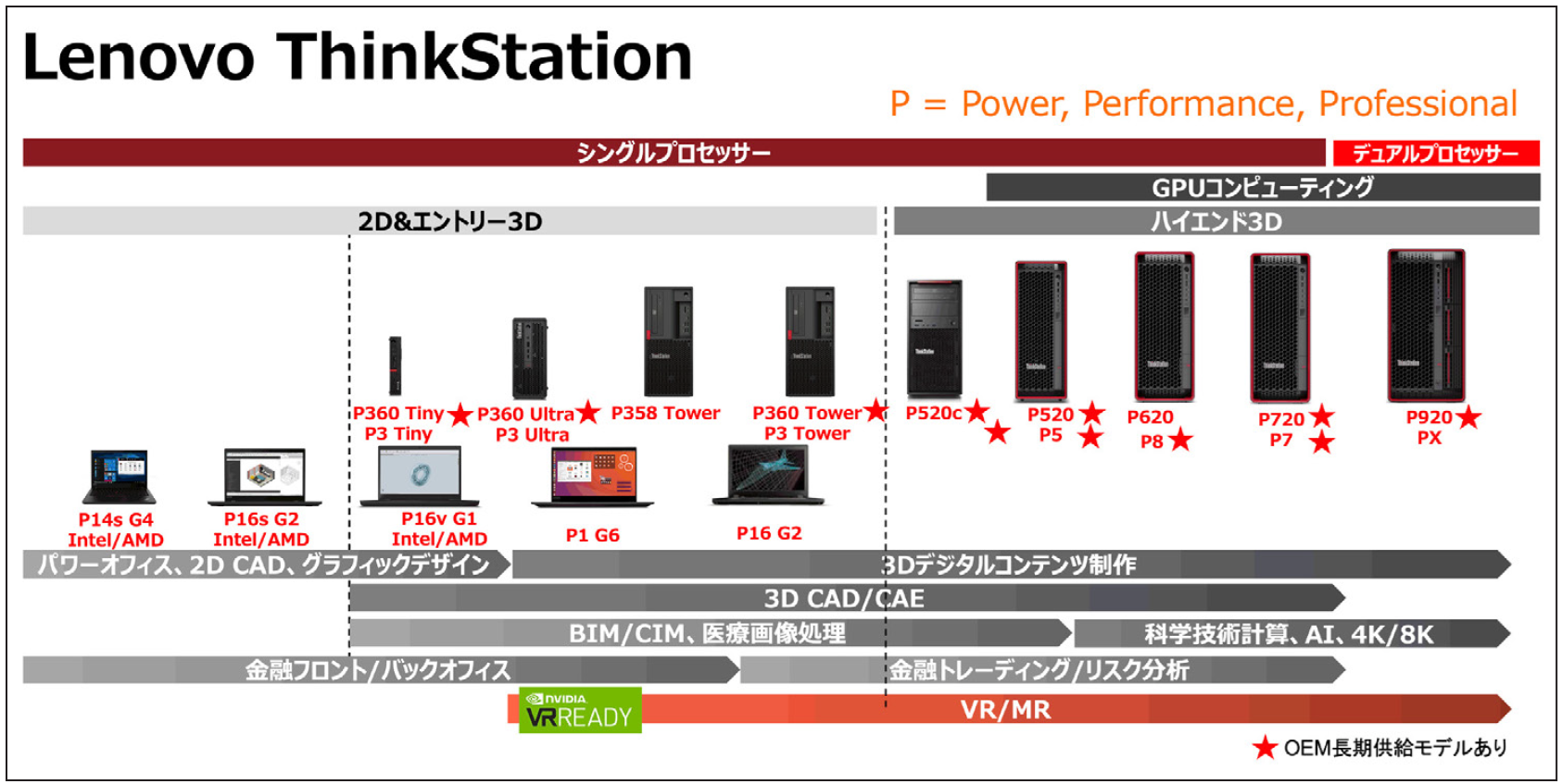 レノボのワークステーションのラインアップ。販売期間が5年の長期供給モデルも用意している 提供:レノボ・ジャパン