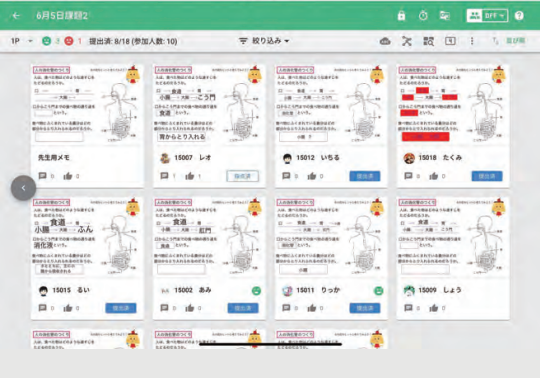 赤松教諭は、さまざまな授業で schoolTaktを活用しています。なかでも同教諭が多用している機 能は 、 課題テンプレートです 。schoolTaktには、図形や計算、漢字、理科の実験など、さまざまな単元のテンプレートが多数用意されており、授業のワークシートとして活用できます。